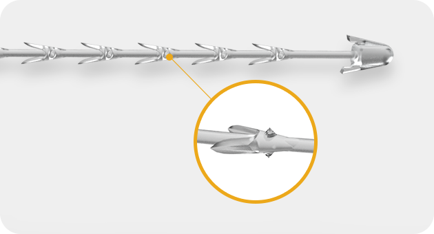 特殊聚合物将 PDO 线包裹在双层 3D Mambrane 膜结构中, 齿长可固定在所需区域。通过专利成型技术,实现突出的外部结构(突起), 确保出色的拉伸强度和粘合强度,从而产生强大的提升效果。