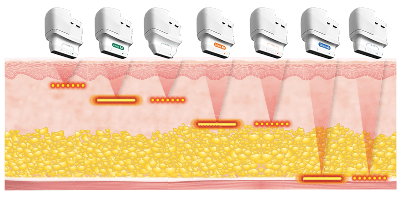 7종 카트리지로 진피상층, 진피층, 근막층(SMAS층) 등