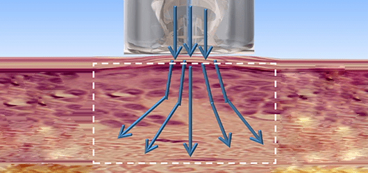 힘으로 피부 깊숙한 층에 도달,