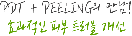 PDT와 PEELING 동시에 진행하는 ONE-STEP-SOLUTION으로 보다 편리하고 효과적인 피부 트러블 개선이 가능합니다.