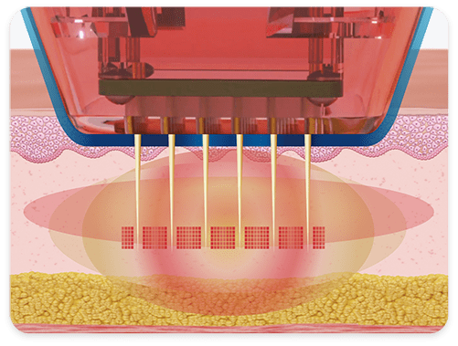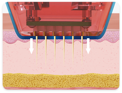 핸드피스 내부 위치한 쿨링시스템을 통해 표피는 쿨링 시키고 진피 조직에는 고주파 에너지를 전달하여 시술하며, 마이크로니들을 0.1mm ~ 4.0mm까지 40단계의 깊이를 조절하여 개인의 피부 상태에 적합한 모드로 높은 시술 효과를 자랑합니다.